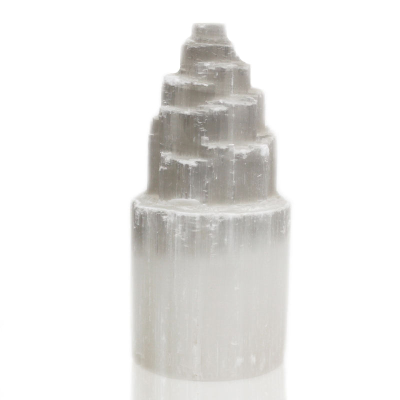 Lampe Tour en Sélénite Naturelle – 20 cm Éclairage Apaisant